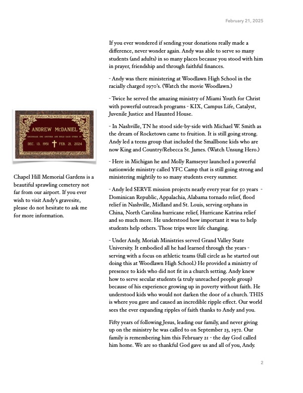Details for Andy’s Celebration of Life and Andy’s obituary are included here.